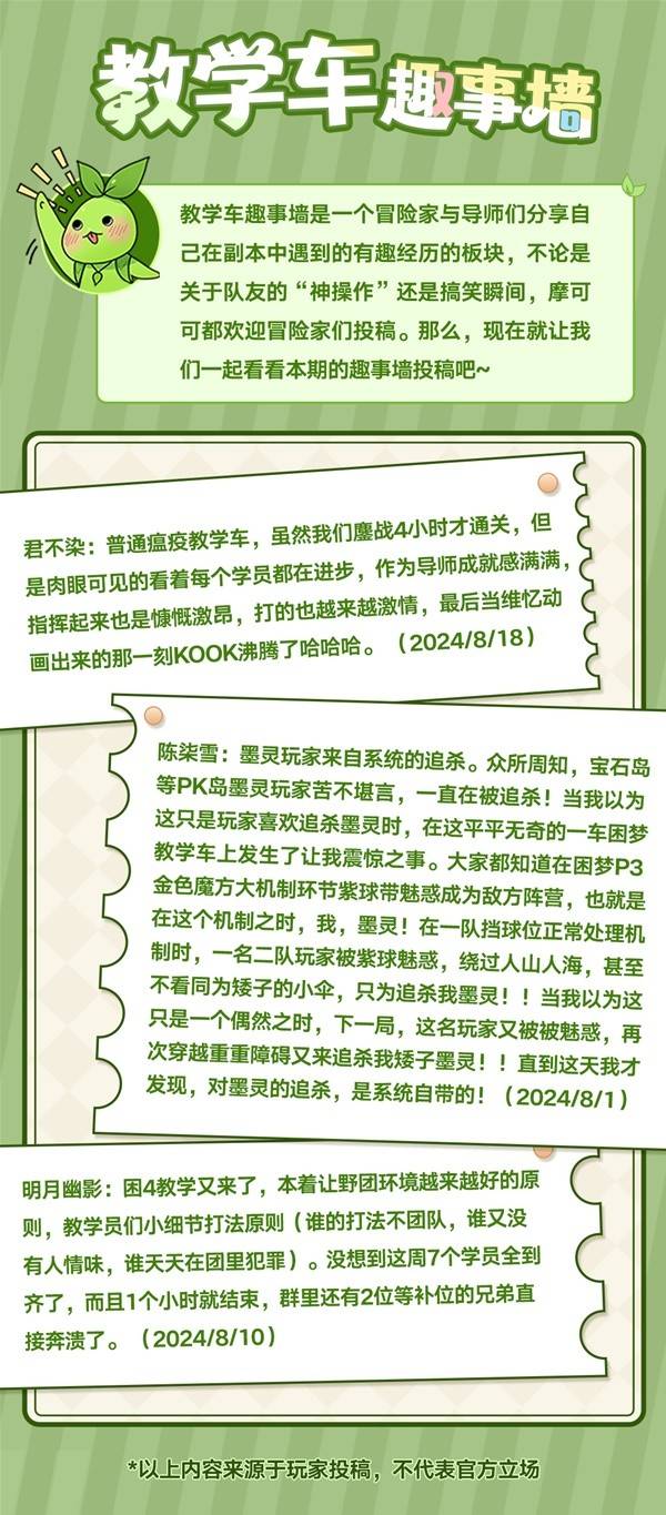 还有冒险家不知道如何加入教学车,为了方便新人冒险家和导师们快速组队,开启教学车,摩可可为大家带来了本周的教学车排期,帮助新人冒险家快速上车!