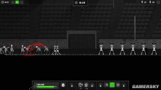 尸群靠近右侧边缘后,这时候差不多火瓶哥该露头了,让一个丧尸跳起来自爆干掉他;把啦啦队尸体变成的丧尸变一个霸王,并让它尖叫来聚拢尸群——维持尸群正好能围住等会跳下来的橄榄球员和啦啦队这样一个位置;