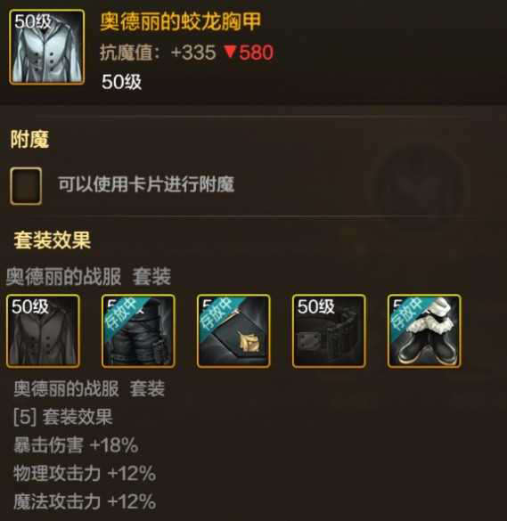 奥德丽套装能够提供18%的暴击伤害和12%物理魔法攻击力加成。
