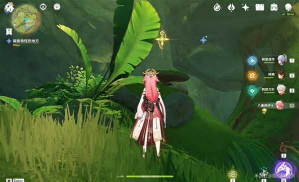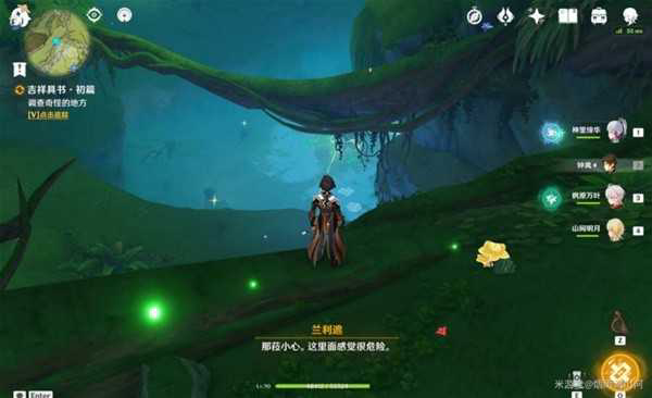 和蘑菇对话接到任务,根据任务提示找到三个发光点。