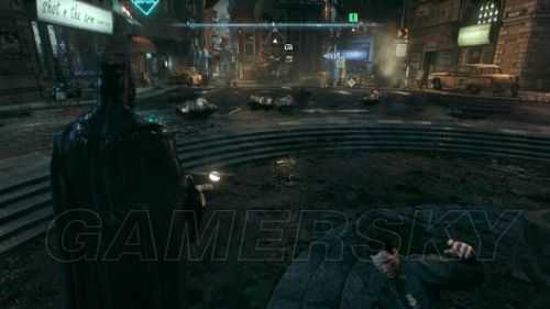直接落下去解决所有敌人,这里也等于是教学关卡,没接触过蝙蝠侠系列的可以多尝试和习惯操作。