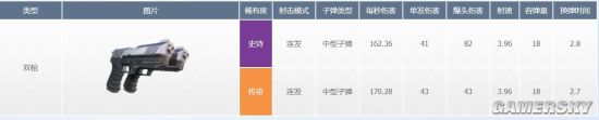 双枪是一次设计2发子弹发射,打中对手就是双倍的伤害,如果可以爆头,最高可以达到166,而且弹匣容量是18,因此可以分为瞬间高输出类武器。