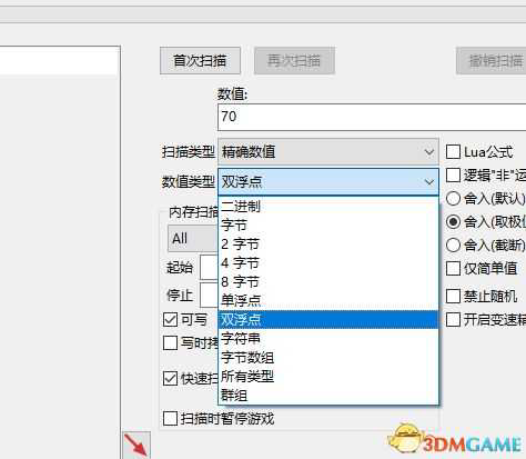 我们打开CE使用双浮点搜索,搜索后获得大量数据。