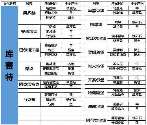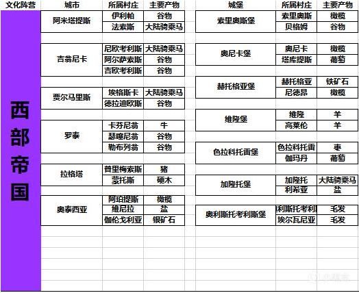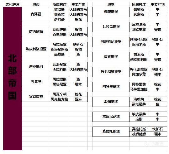 帝国都大致相同,只不过村庄产物不同各个城镇物品物价也不同,主要产品还是,大陆骑乘马,帝国战马。