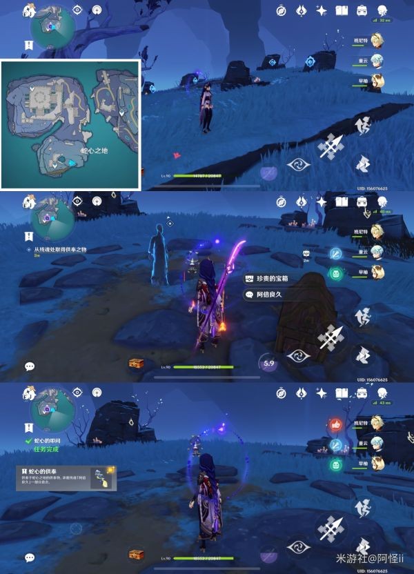5、前往蛇心之地五个键纹石头处,将键纹镶嵌进去,“阿倍良久”就会出现并开启挑战,完成挑战可获得珍贵的宝箱*1和蛇心的供奉
