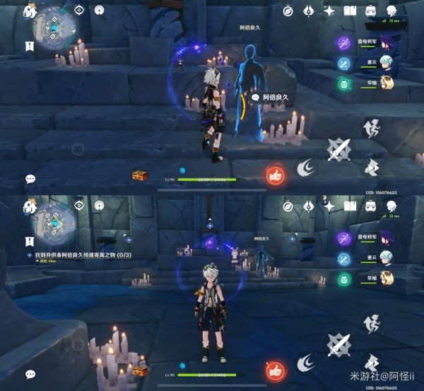 2、走进大门发现一个“阿倍良久”,与他对话就能触发隐藏任务「许怕利翁哀歌」,大致内容就是找到3个供奉之石放置再相应位置