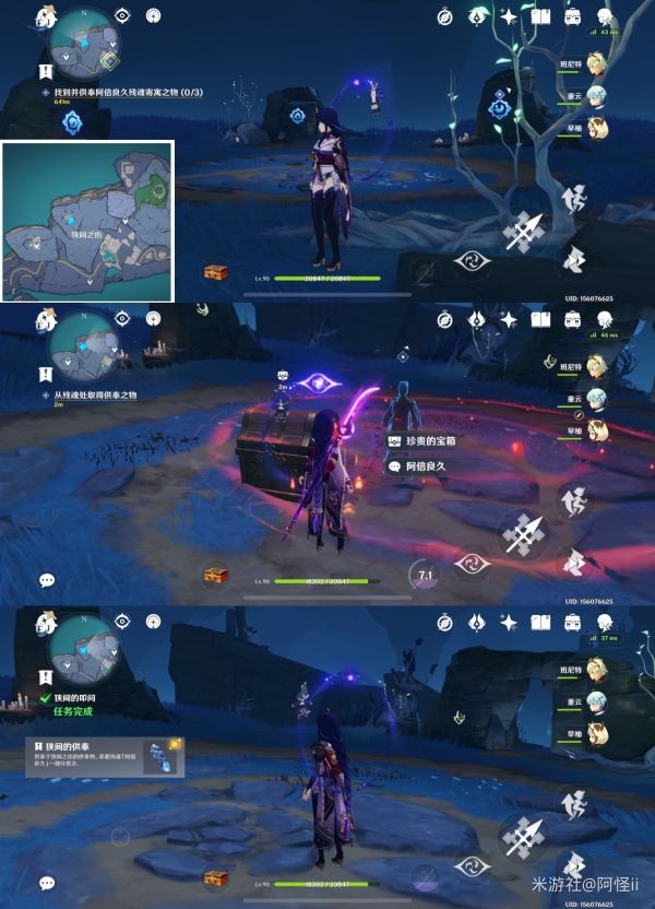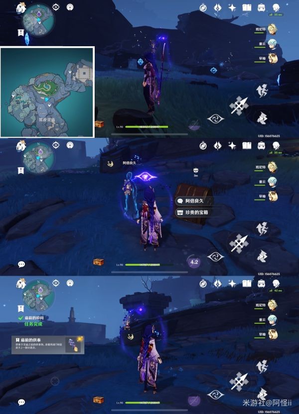 4、前往常夜灵庙五个键纹石头处,将键纹镶嵌进去,“阿倍良久”就会出现并开启挑战,完成挑战可获得珍贵的宝箱*1和庙前的供奉