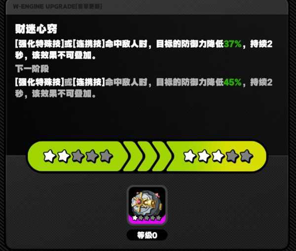 音擎需要通过强化来提高等级,通过改装来提高等级上限,通过提高等级来提高基础属性和高级属性。强化材料可通过VR试练或者抽卡商店获得(不能吃音擎当狗粮);改装材料可通过VR试练获取,一共有4种改装材料,暂时没法总结出使用不同材料的音擎的共同点。
