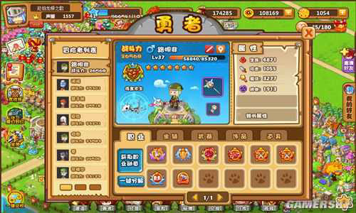 2) 勇者信息界面中显示内容:勇者职业,职业星级,勇者性别,勇者经验和等级,勇者装备和各项属性。