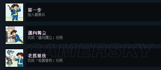 钢铁兄弟会路线,铁路路线,以及义勇兵路线共有的成就,无论走三个中的哪一个,都能解锁这个成就