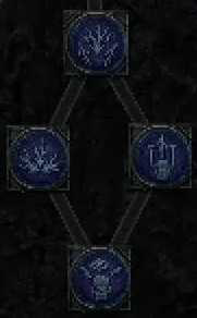 这些菱形节点是技能树中的一部分,可以用来升级技能。每个主动技能都有两层菱形节点。它们可以强化与之连接的主动技能。然而终极技能有点不同,因为它们只有两个升级,没有选择的余地。