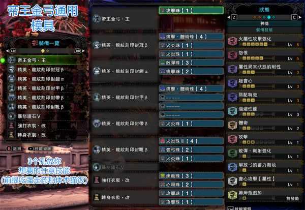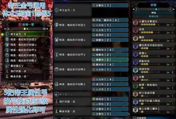 帝王金弓+冥赤5件。凯罗弓+银火4件属解。冥赤弓+银火4件。