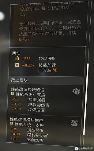 在此基础上直接牺牲护膝的精打细算换上李希特的护膝套装属性和天赋绝缘共40的危害防护补足了3个插件的不足,达到100的干扰抗性。