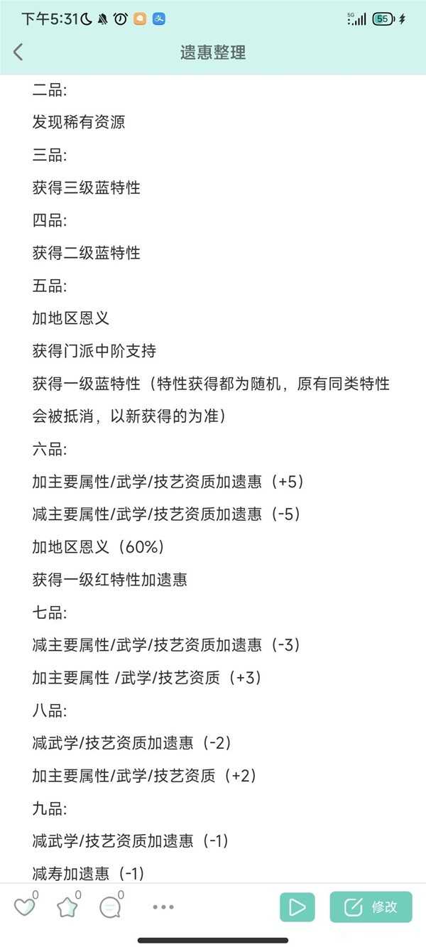 《太吾绘卷》遗惠机制可以让玩家在传剑之后可以让下一代拥有额外的属性Buff,下面请看玩家“何裕恒”带来的《太吾绘卷》正式版遗惠机制解析,一起看看吧。