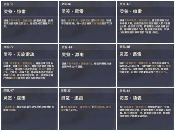 火雷相关,增幅反应不选,火属性优先,奇术点消耗多的灵签优先。