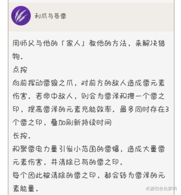 元素爆发大幅度提升攻速并且普攻附带雷元素伤害