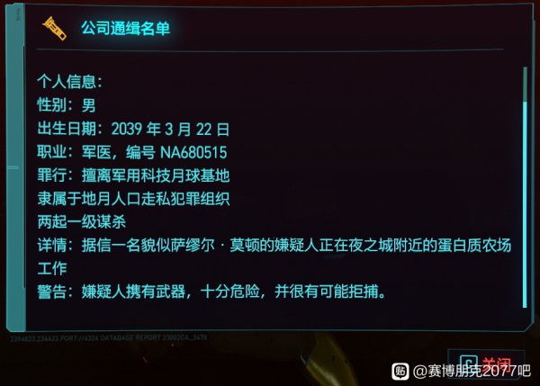 左下角农场找到个尸体,军用科技的逃兵,编号NA。
