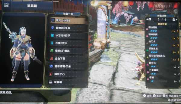为了弥补会心选择弱特3,精神抖擞3,一共80%的会心,冰原改的见切消耗耐力,现在rise又改回来了,所以精神抖擞覆盖率挺高的,只要不翻滚就一直生效。另外,如果你有纳刀2护石或者更多的二级孔,可以插更多的达人珠,提高会心。但是我估计都直接做迅龙太刀那套校服了吧。