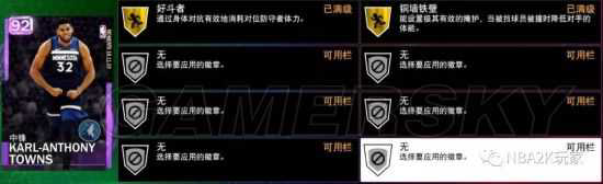 紫卡标配的徽章数量,中距离远距离投篮都能打上,持球防守、护框精英也建议打上,其它的大家就看自己的喜好来吧。