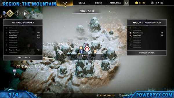 第一个碎片位于山巅附近(快速旅行点旁边)的一个隐藏区域里。从传送门出来后(第一次遇到密米尔的那棵树),穿过山口往回走,路的左侧有一个缺口,靠近后会出现按键提示。爬到下边去就能找到宝箱。