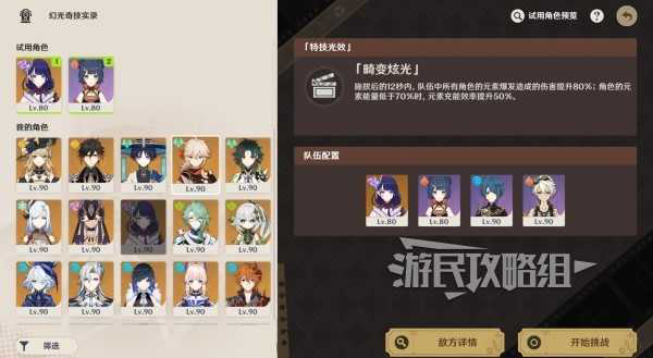 本关的增益效果是元素爆发的增伤和循环率提升,因此建议围绕能够打出高额元素爆发的主C来搭配阵容,试用的雷电将军元素爆发伤害很高,也能为队友提供增伤,推荐选择。