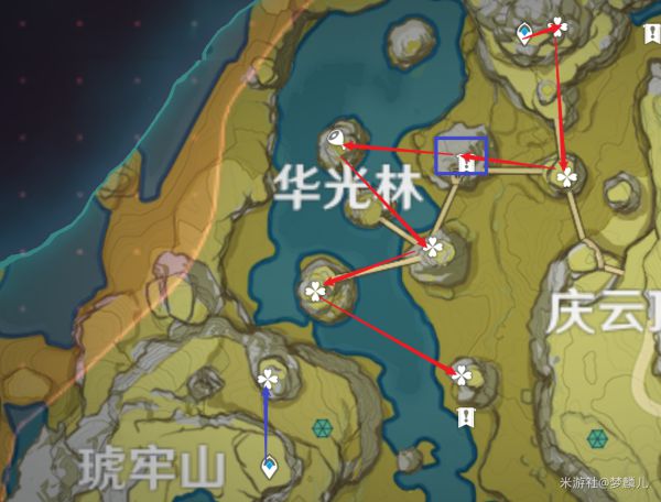 注:蓝框位置为风场,需要风元素角色开启,线路亦可综合上述高效线路根据个人情况切割。