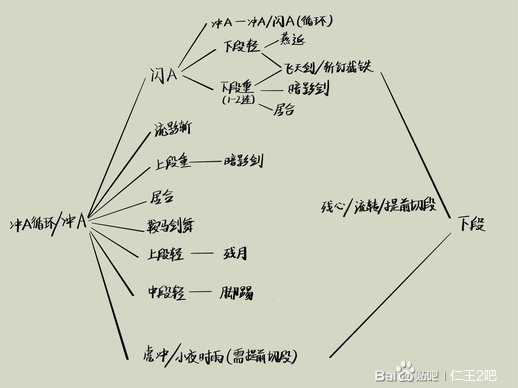 如题,仅面对妖怪敌人可以参考,以冲a为起手的各种派生招式,当然根据情况也可以选择直接以第二列招式起手,具体面对哪种敌人选择哪种连段试一试就知道了,敌人种类太多,战斗时变数也太多,这个没法具体一一例举出来说。这套出招模式仅仅适用于和未空精敌人周旋,也就是削精阶段使用,后续不是必须回到下段,如果敌人要空精了也可以连携其它招式压制。后续派生也可以随时中断,不代表一套都要完整打完,一套连招具体打到哪,后续还要不要继续接其他招式需要根据实际情况选择,不好一概而论。