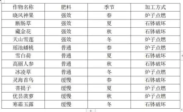 接下来就是种药,收药,炼药,试药环节了,姑且做了个表格如下: