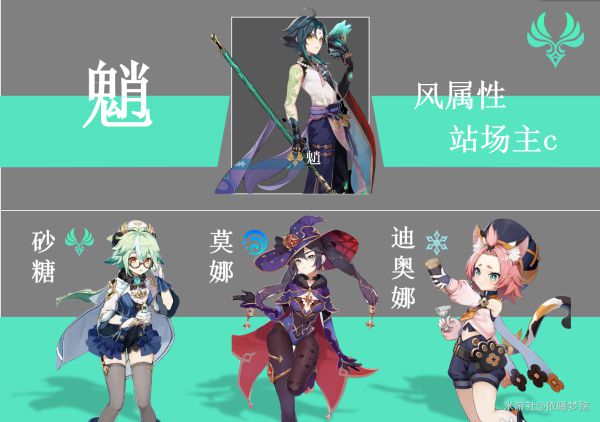 理由:这个队伍是魈作为站场主c,砂糖给魈充能,如果是1命魈的话可以吧砂糖的祭礼书换成讨龙为魈加伤,莫娜大招为魈起到一个易伤效果,迪奥娜则是为魈提供套盾和固定天赋2的机制防止魈暴毙。