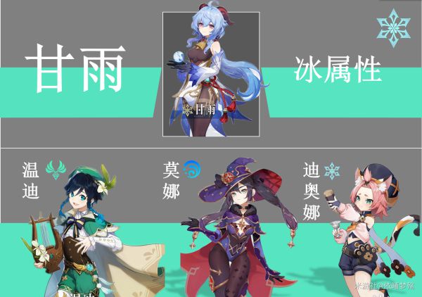 理由:这里面没有谁是c,如果硬要说的话,我感觉是温迪和甘雨(反正这几个人在队伍里面都缺一不可)速切流。甘雨在莫甘娜温里面起到一个挂冰的作用,温迪开大染冰聚怪,莫娜开大加伤打冻结,迪奥娜为甘雨充能和套盾。