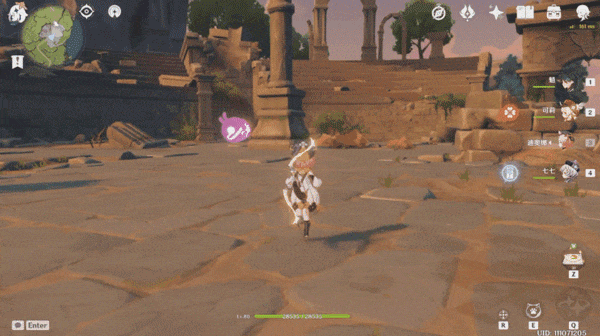 2. 迪奥娜长按技能会往后退,所以我们只要转个方向开技能,既能弥补往后退的机制又能赶路,也是非常不错的。