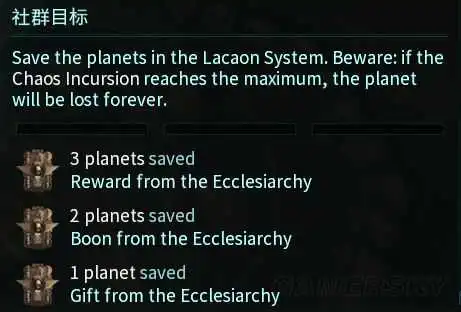 若混沌入侵进度条达成满载星球会永久毁灭。