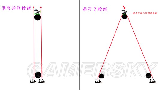 不错,就是本期要来讲解的枪线。什么是枪线呢?就是你和你的队友分开站位,对敌人形成了夹角,这样可以有效的缩小敌人的掩体可遮挡面积。下面给出一张示意图供大家理解。