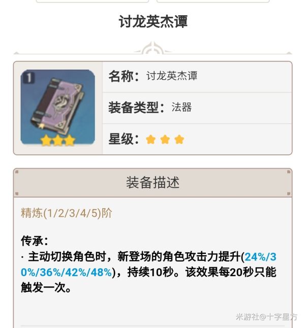 这时候就是怕伤害不高,但一点问题都没有。整个双火共鸣,25%攻击力就到手了。有火法就更好了,装个精五的讨龙英杰谭,换下人物10秒的48%攻击力就到手了。顺手还能打下融化。