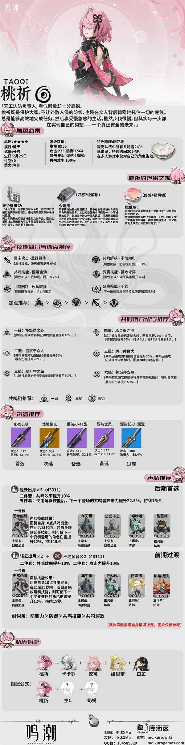 《鸣潮》中桃祈是一名四星湮灭属性的角色,使用的武器为长刃,那么桃祈的出装与队伍搭配都有什么推荐呢?下面请看由“小沐XMu”带来的《鸣潮》桃祈全面培养指南,希望可以帮助到大家。