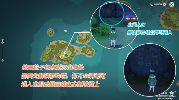 注:在群岛中发现任意一张壁画即可开启任务,需要各位旅行者给每幅壁画进行留影以推进任务。留影方式:左上角派蒙-拍照-调整好角度后回车拍照即可(不需要保存照片,照一下退出来即可)