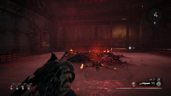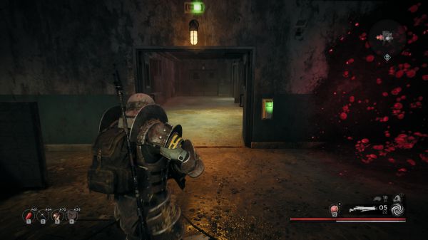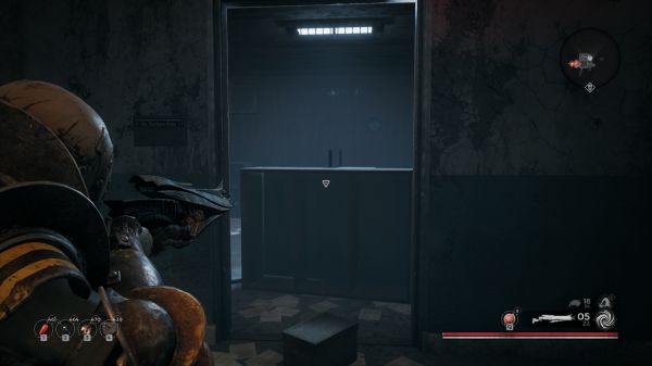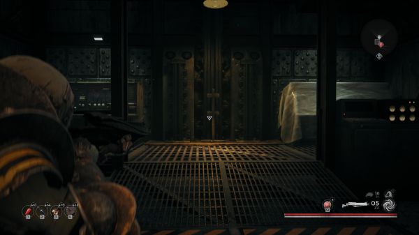 然后我找了半天发现就在门口对面有两个隔板开枪打掉里面有钥匙卡