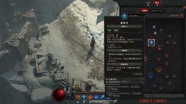 暴风雪减速+冰冻群控,伤害也客观,完美弥补前面连锁闪电的AOE不足,其他的陨石火墙闪电球基本都属于伤害低消耗高感觉。