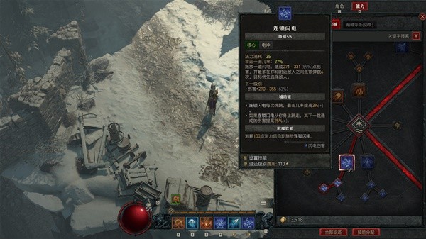 连锁闪电速度很快,伤害可观,特别是打BOSS时,下BOSS血量嗖嗖的,放一次能在BOSS身上跳三下,就是打怪堆的时候比较慢,用后面的技能来补群攻