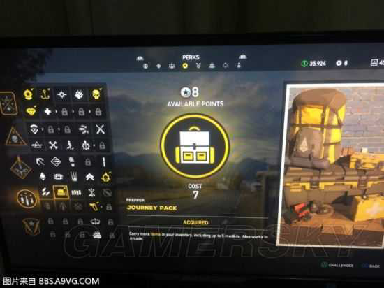 之后装备图二和图三的两个PERK,分别是动物皮毛掉落双倍以及道具栏空间双倍,开始打猎之旅。