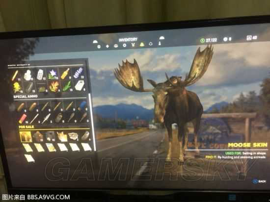 此处可以先猎杀牦牛,使用弓箭可以一只拿4块(最好带上弓箭手妹纸),弓箭射头事半功倍。杀3只后牦牛10块满了,然后扔肉在地上,出现黑熊或者美洲狮,继续射头,然后再扔肉,继续射头,美洲狮和黑熊很快就可以各10块。最后去营地左侧的山坡射杀大角鹿,10块入手。然后附近很快就会刷新商人,如图四,四种动物都可很快到达10块肉,马上卖掉,再继续循环。