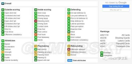 而且钻石科比双速也达到了95,90控球更是非常出色,这样将极大提高科比的突破能力,很容易就能侵入禁区造成杀伤,不过没有紫色隔扣徽章是个遗憾。