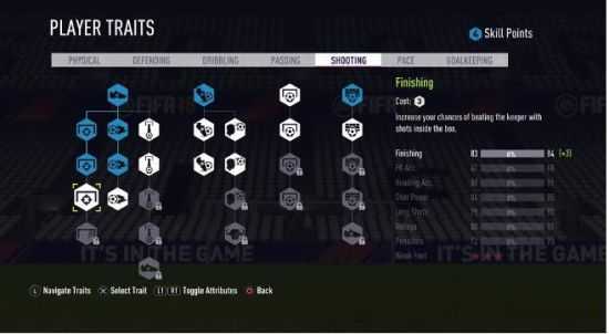 技能树包含7大属性:身体、防守、盘带、传球、射门、速度和守门。你可以根据自己的喜好或者是球员的特点,自行调整,来增加球员的能力。技能点数主要的获得方式就是多踢比赛。