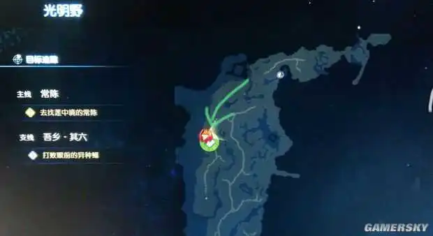 按照图示剪头路径走,就能触发剧情,打一只大鸟,在光明野逛了好久才遇到。