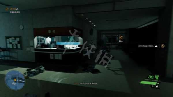 沿路一直前进来到医院,触摸板可以打开地图L3奔跑。