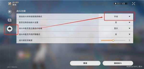 PS:战斗是强制自动但是可以自己设置手动释放终结技,设置方法如下: