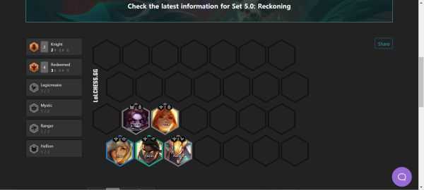 1.圣光韦鲁斯过渡,这是最常见的,也是最适合新手的一套过渡体系,因为是体系内变动,天使来了把韦鲁斯换天使就可以,但并不是盘盘都能硬走的,建议2-1能凑出3圣光再走,开局4人口,曙光+韦鲁斯+剑魔/辛德拉+任意骑士,肉装给曙光,天使装备给韦鲁斯,站位建议全部沉底站位,这样韦鲁斯的箭雨覆盖己方单位的几率会大很多,在不卡利息的情况下留骑士牌,毕竟骑士牌是要用到最后的,拉克丝如果卡经济了都可以不留,站位如下图所示