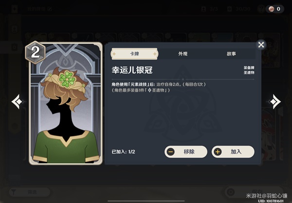 诺艾尔核心,两张带满,主要提升在于提高站场能力,不强求装备,实际使用的优先级较低;因为该挑战目标回合限制较紧张,在需要使用元素战技时替代使用即可。