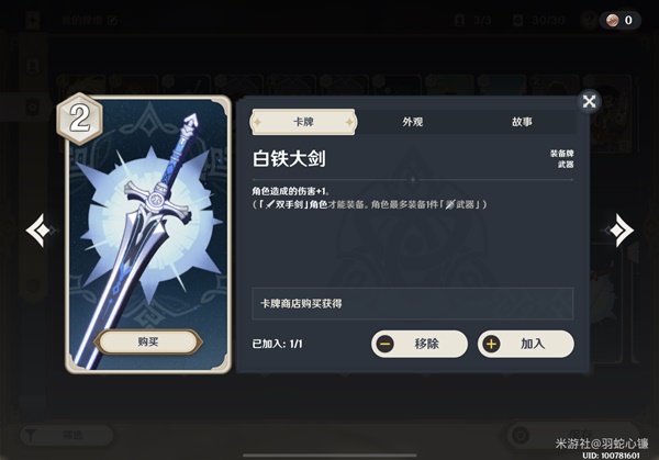 该挑战中诺艾尔因为有其它卡牌补充骰子,所以对于「祭礼大剑」的需求不大,而且「白铁大剑」更容易成型,更适应快节奏需求。
