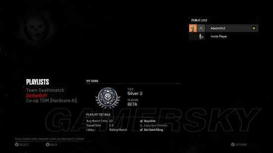 BETA版提供三种模式,有常见的Team Deathmatch(团队死斗)、新增的 Dodgeball(躲避球)以及 Co-op TDM(合作死斗打 AI)等。而最令笔者惊讶的是除了 Co-op 之外,两个模式都有 RANK(牌位)系统。通常比较偏竞技取向的游戏才会有 RANK,也是最近几年很流行的一种模式,这种系统通常会依照玩家的水平给一个牌位,并在搜寻战局时提供相似牌位的玩家一起战斗,要是玩家连胜的话会给予升牌,反之连输的话就会降牌。